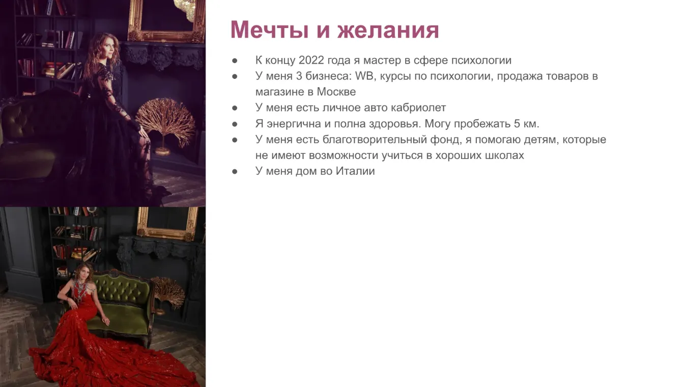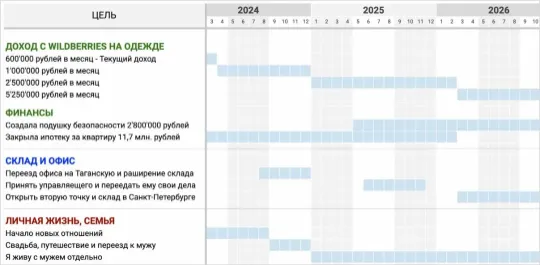 Фиксируется текущая ситуация и желаемый результат. Делается визуальная картинка всех целей и задач
